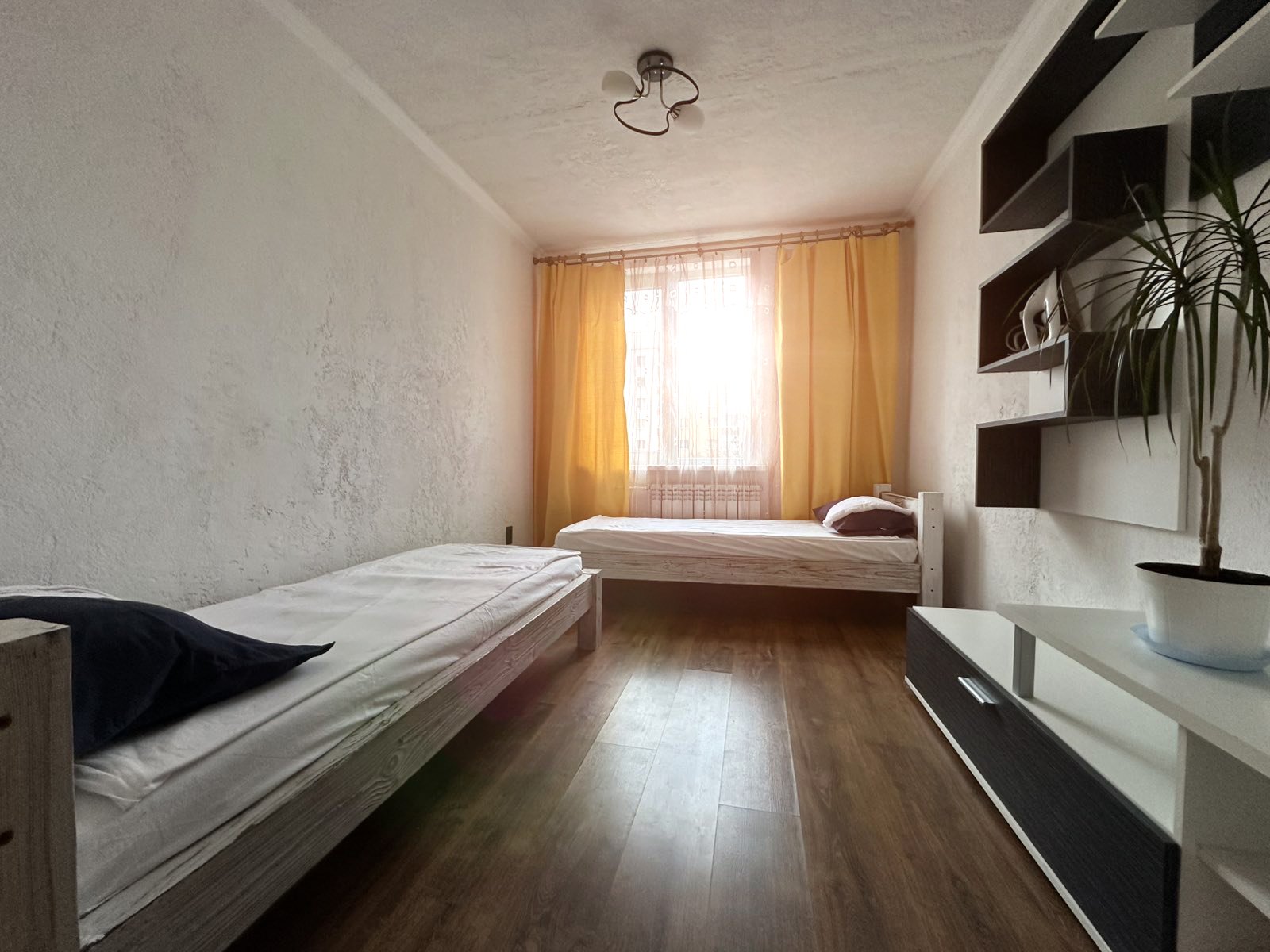 Сдается просторная 3-комнатная квартира посуточно. Вмещает до 7 гостей. Свежий ремонт, всё работает исправно. Есть 7 спальных мест (кровати и диваны). Чисто, уютно, как дома. Подойдет для семьи с детьми или тихой компании. Всё необходимое в квартире есть — техника, посуда, постельное белье. Рядом магазины и остановка.